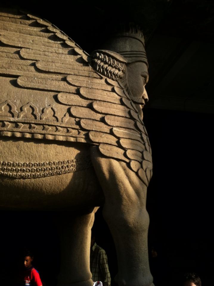Когда ты стоишь перед зданием - огромным и идеально выбеленным, таким, что от индийского солнца режет глаза, то несмотря на гул индийской улицы и невозможность перейти дорогу тебе кажется, что ты в Европе. Но все меняется при входе в здание - теперь ты в Индии. Полумрак, который свойственен библиотекам, нагромождение огромных старых шкафов, вентиляторы и обычные обшарпанные парты. И все это среди величественных колонн. Легкое ощущение заброшенности. И так везде. Богатый имперский центр Бомбея, выстроенный как "город будущего" англичанами и индийские реалии, наставшие после получения независимости. Постоянное ощущение, что что-то пошло не так.